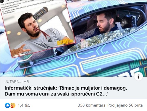 Mate Rimac! Smuljao si u Hyundai i Porsche, a muljaš i preko tisuću ljudi svaki mjesec kada im demagoški isplaćuješ plaću… Bolje bi ti bilo da svoje vrijeme ulažeš u crtanje karikatura koje nikome nisu smješne…