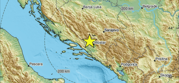 Epicentar potresa bio je na dubini od 60 kilometara, oko 24 kilometra sjeverozapadno od Mostara.