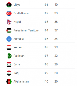 Na samom dnu Henley Passport Index statistike nalaze se države poput Sirije, Iraka i Afganistana. Državljani Afganistana, države koja se ujedno nalazi na posljednjem mjestu liste, imaju pristup u samo 26 država svijeta.