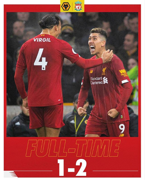 Ni ekipa Wolverhamptona nije uspjela večeras da zaustavi Liverpool, koji je nezaustavljivo nastavio koračati ka šampionskoj titulu. Wolvesi su pružili snažan otpor Redsima, ali na kraju nisu uspjeli da izbore ni remi i osvajanje jednog boda, pošto je Firmino u finišu donio trijumf svom timu. Liverpool je poveo u 8. minuti preko Hendersona, kojem je asistirao Arnold, a na startu drugog dijela domaćin stiže do poravnanja. Sjajnu su akciju odigrali Wolvesi, na kraju je Traore centrirao za Jimeneza, koji udarcem glavom matira Alissona. Kada se činilo da bi moglo završiti neriješeno, na scenu je stupio Firmino, koji pogotkom u 84. minuti, na asistenciju Hendersona, postavlja konačnih 1:2. Liverpool je sada na 67 bodova, 16 više od drugoplasiranog Cityja, koji ima i utakmicu više. Wolvesi su sedmoplasirani sa 34 boda.