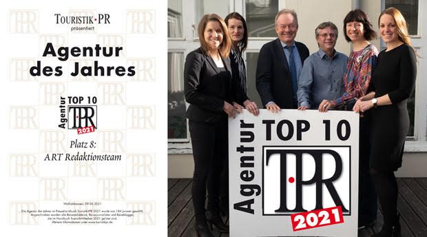 Velika potvrda visoke kvalitete PR agencije ART RedaktionsTeam koja je već godinama uspješno angažirana u Hrvatskoj: Među više od 320 konkurenata iz Njemačke, Švicarske i Austrije, agencija iz Salzburga odlikovana je kao jedna od 10 najboljih turističkih PR agencija u zemljama njemačkog govornog područja.