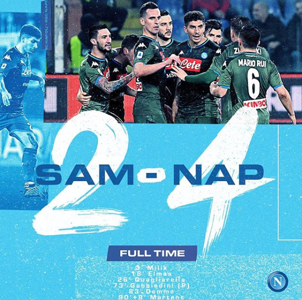 Napoli je u utakmici 22. kola italijanske Serije A na Luigi Ferrarisu savladao Sampdoriju sa 2:4, a ovo je bila treća vezana pobjeda za Gennara Gattusa na klupi Napolitanaca, nakon što je savladao Lazio u Kupu Italije i Juventus u domaćem prvenstvu. Strijelci za Napoli bili Milik, Elmans, Demme i Mertens. Za Sampdoriu su pogađali Quagliarella i Gabbiadini. Napoli je sada deseti, dok je Sampdoria na šesnaestom mjestu.