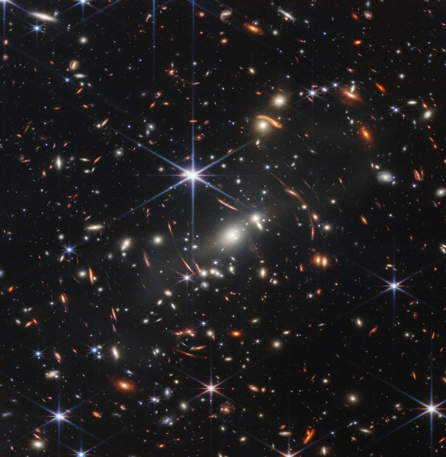 Slika prikazuje SMACS 0723, gdje ogromna grupa klaster galaksija djeluje kao povećalo za objekte iza njih.