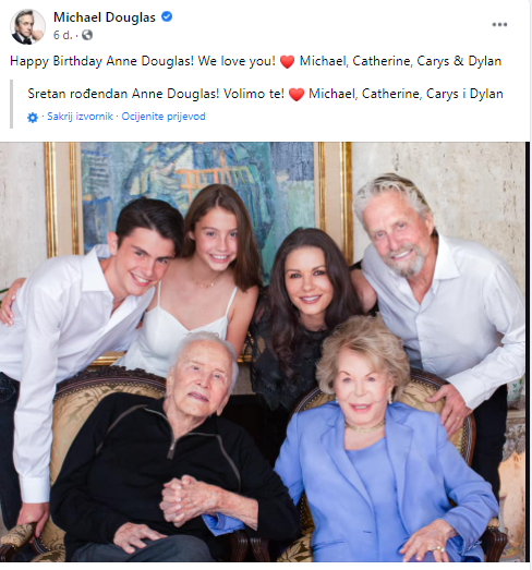 – Uvijek je budila ono najbolje u svima nama, posebno u našem ocu. Tata nikad ne bi uspio napraviti ovakvu karijeru bez njene podrške. Catherine i ja smo je beskrajno mnogo voljeli. Zauvijek će biti u našim srcima, napisao je Michael Douglas u oproštajnoj poruci.