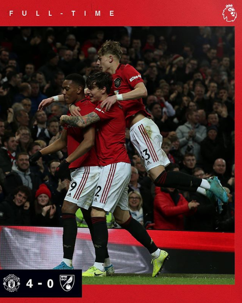 Uvjerljiv je bio i Manchester United, koji je protiv fenjeraša Norwicha slavio pobjedu sa 4:0. Dva gola djelo su Rashforda, a po jedan Martiala i Greenwooda .